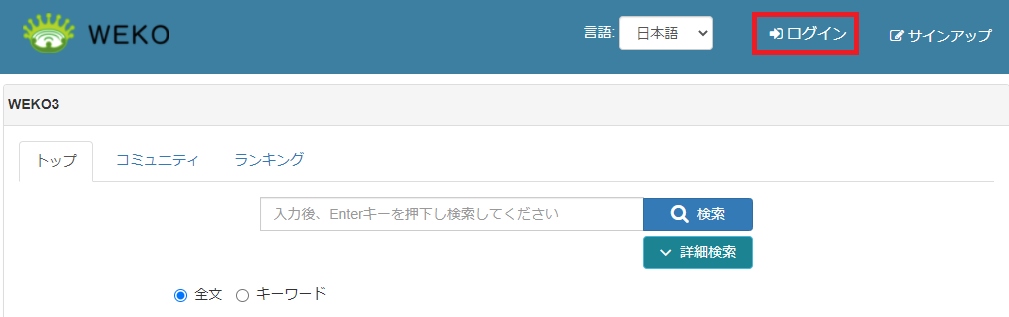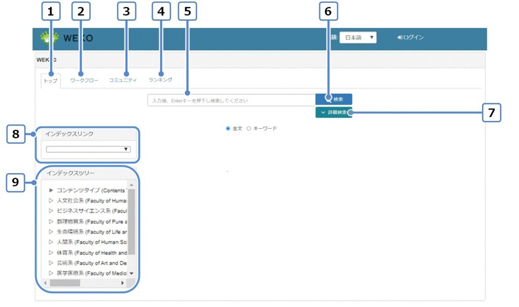 | 1 | WEKOのロゴをクリックするとリポジトリのトップページに遷移します。 |