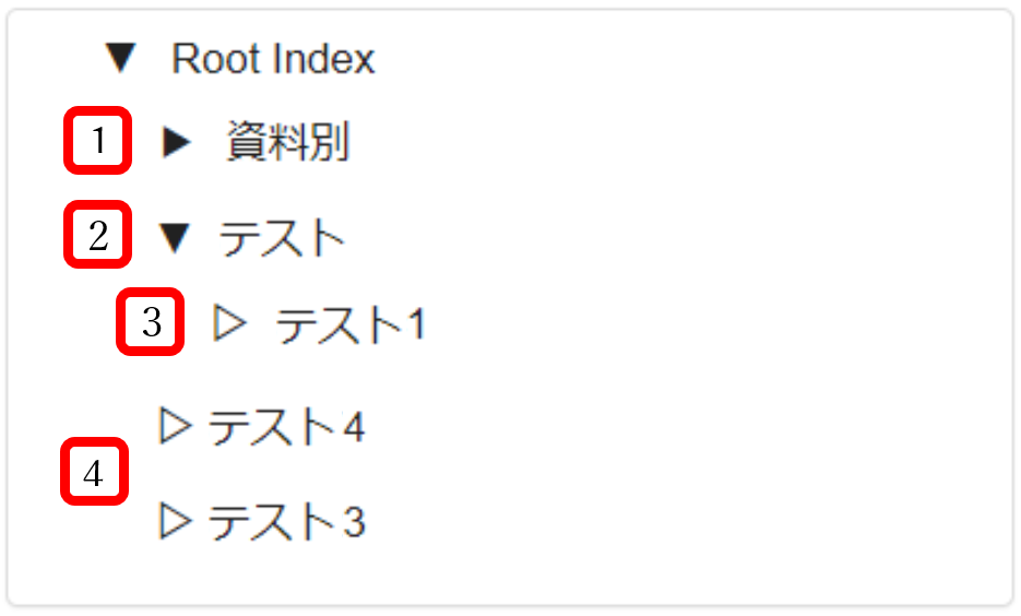 | 3 | 「テスト」の子インデックス 子インデックスを持たない |